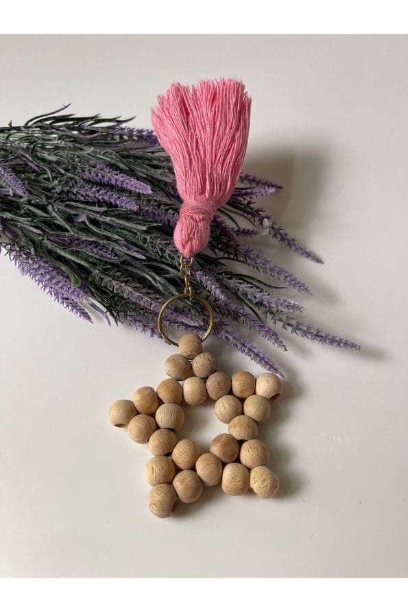 20 Adet Pembe Jelatinli Ahşap Boncuk Yıldız Anahtarlık Hediyelik Söz, Nişan, Kına