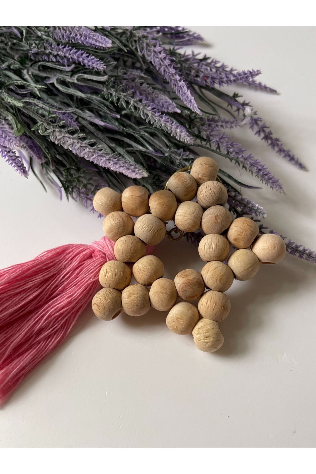 Ahşap Boncuk Yıldız Pembe Anahtarlık