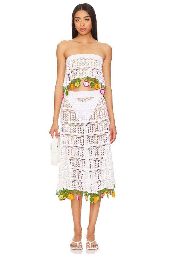 El Örgüsü Beyaz Crop Bluz Etek 2’li Takım