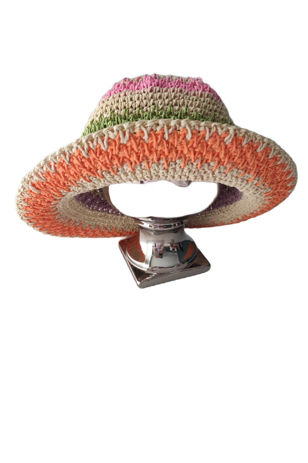 El Örgüsü Renkli Çizgili Hasır Şapka