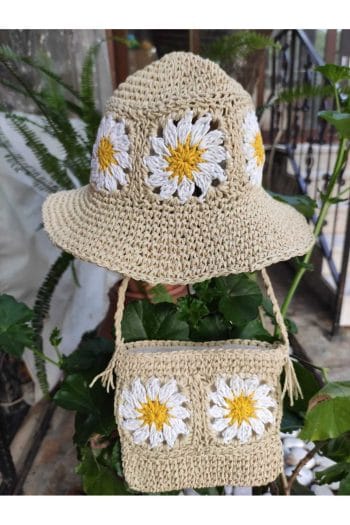 - El Örgüsü Bej Yan Cepli Kadın Hasır Omuz Çanta