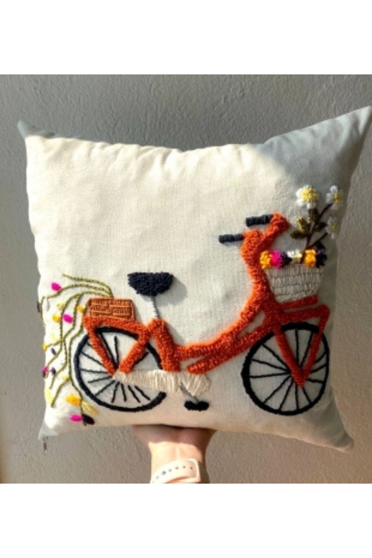 Özel Tasarım Keten Punch Kırlent Kılıfı El İşçiliği Bisiklet Figürlü 42×42